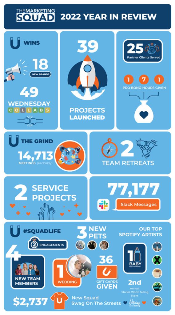 We started a little tradition at The Squad a few years back. It’s amazing how time flies. We said we’d sum up the year in a fun way. We’d come up with some stats, memories and the like that helped us remember the year and put it in the books so to speak. We decided we’d create an infographic, that we’d turn into a physical poster on the wall, that we’d animate into a video and then publish it all to our blog.